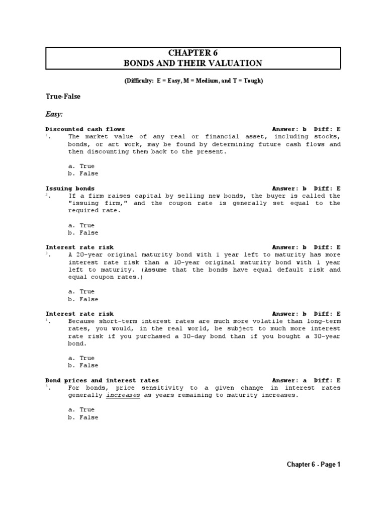 Finance Chapter 6 (Practice Questions) Flashcards | Quizlet A measure of return that takes account of both coupon payments and change in a bond's value over its life is a standard measure known as face value The payment made when a bond matures is called the bond's: face value When the coupon rate of a bond is equal to the current interest rate, the bond will sell for coupon payment, interest rate
