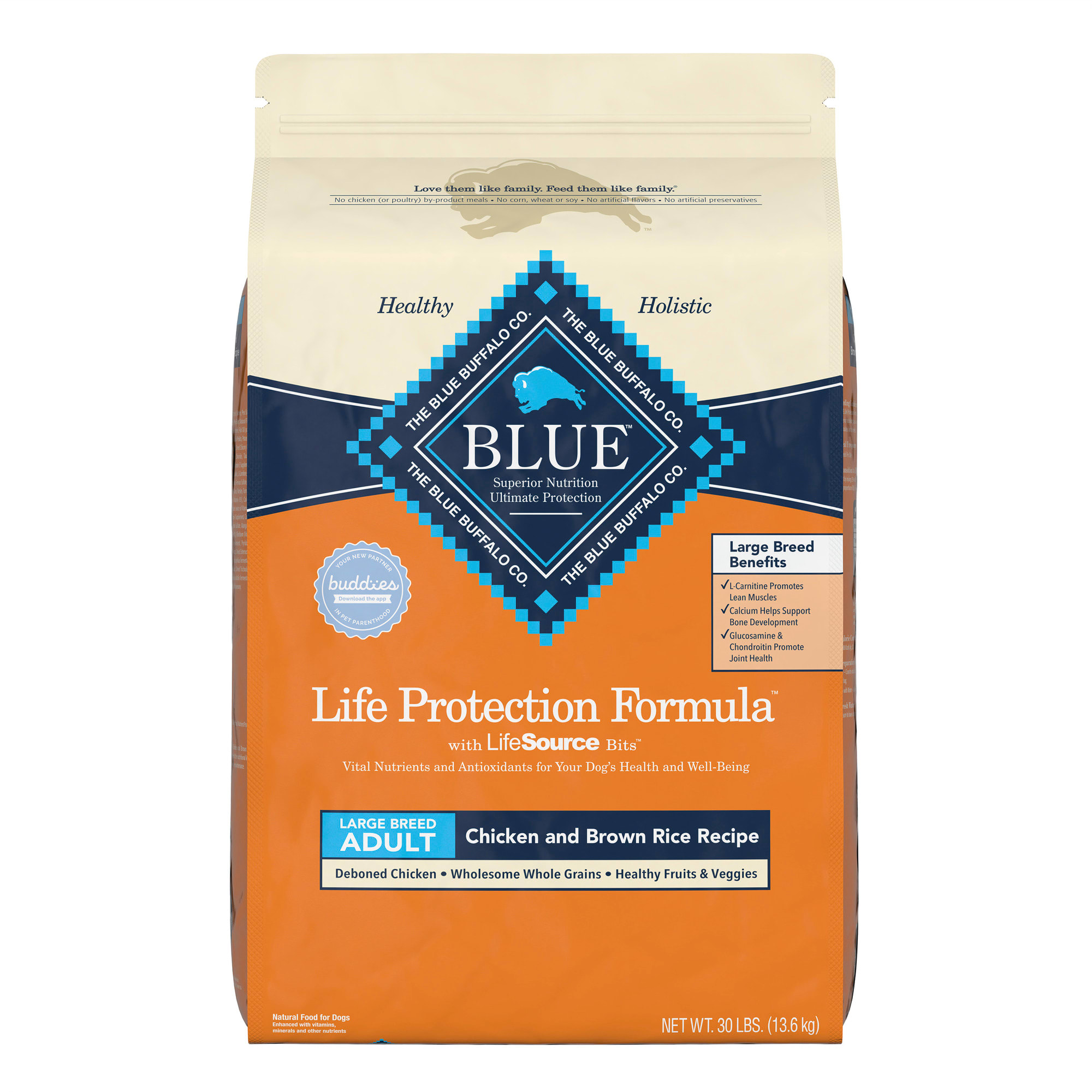 Blue Buffalo Life Protection Formula Natural Adult Large Breed Chicken and Brown Rice Dry Dog Food, 34 lbs.