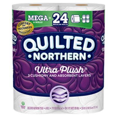 Quilted Northern Ultra Plush® Toilet Paper, 12 Mega Rolls = 48 Regular ... Quilted Northern Ultra Plush® Toilet Paper, 6 Mega Rolls = 24 Regular Rolls, 3-ply Bath Tissue 4.7 out of 5 stars 1,504 1 offer from $6.98 Quilted Northern Ultra Plush Tissue, 6 Mega Rolls Sweet Lilac & Vanilla Scented Tube - Toilet Paper 4.6 out of 5 stars 334 4 offers from $20.99 Climate Pledge Friendly
