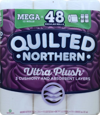 Quilted Northern Ultra Plush Toilet Paper - Shop Toilet Paper at H-E-B Quilted Northern Ultra Plush Toilet Paper. 12 Mega Rolls. $14.35 ($0.04/sq ft) Product description. Quilted Northern Ultra Plush® toilet paper offers 3 cushiony and absorbent layers of comfort for the clean feel you expect and the luxurious feel you desire. Silky.