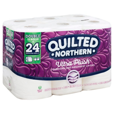 Quilted Northern And Bath Tissue Coupons Worth $3.00 & Deal Buy (1) Quilted Northern Ultra Plush® 3 ply Toilet Paper 12 Double Rolls $6.99 Total $39.57 Use (1) $1.00 off any 1 Quilted Northern and bath tissue coupon Use (2) $2.00 off any 1 Quilted Northern and bath tissue coupon Save $10.oo when you spend $40.00 Pay $24.57 after coupons for 72 Double rolls